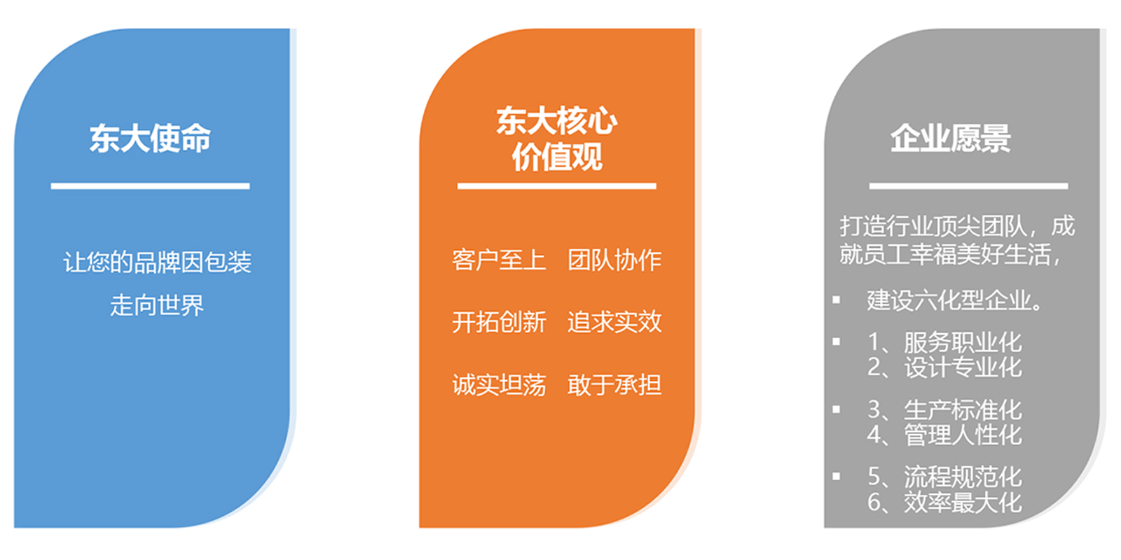東大人執行使命:讓您的品牌因包裝走向世界不斷前行,面臨困難始終堅守如一,不拋棄,不放棄!
